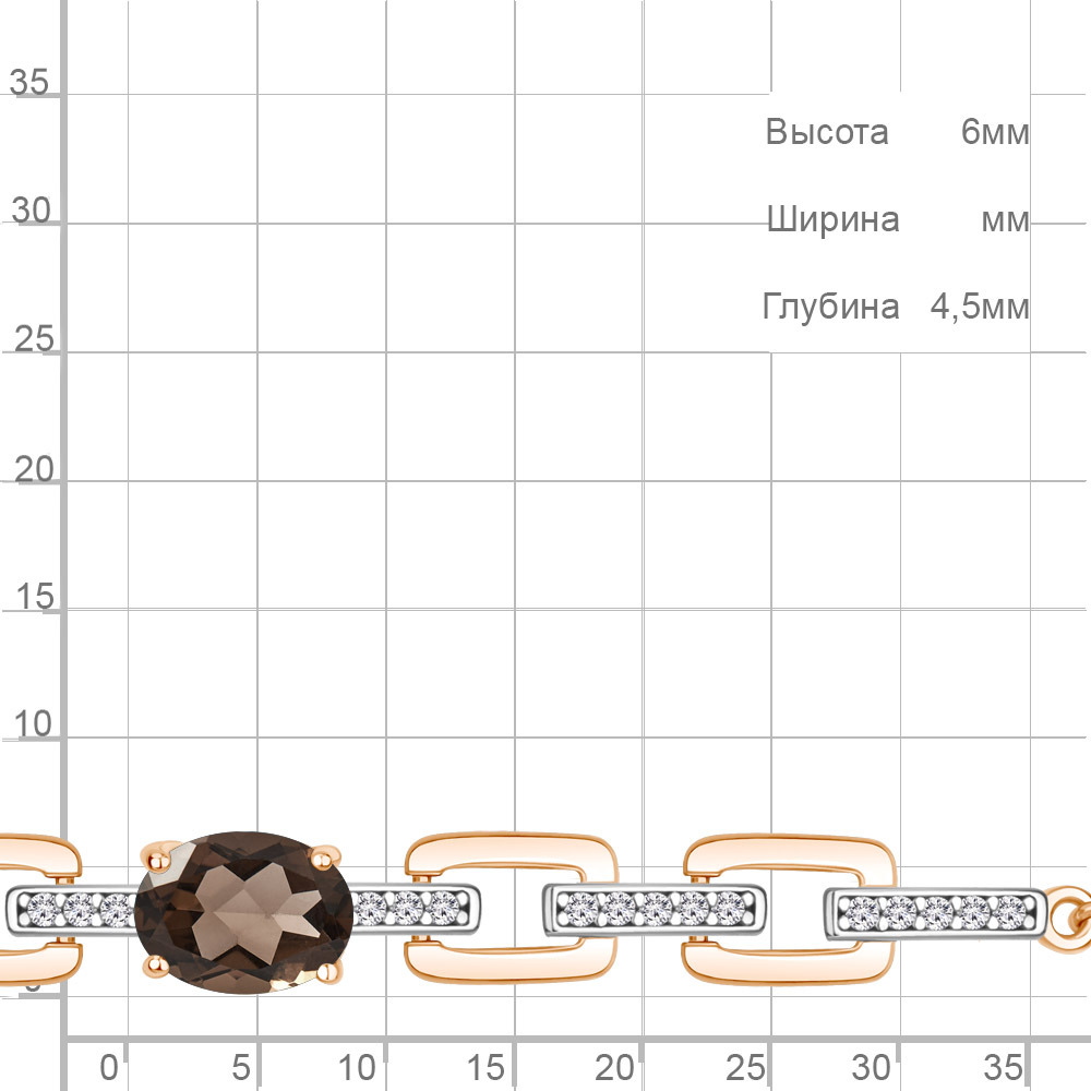 7477701А Браслет из Серебра с кварцем дымчатым, фианитами