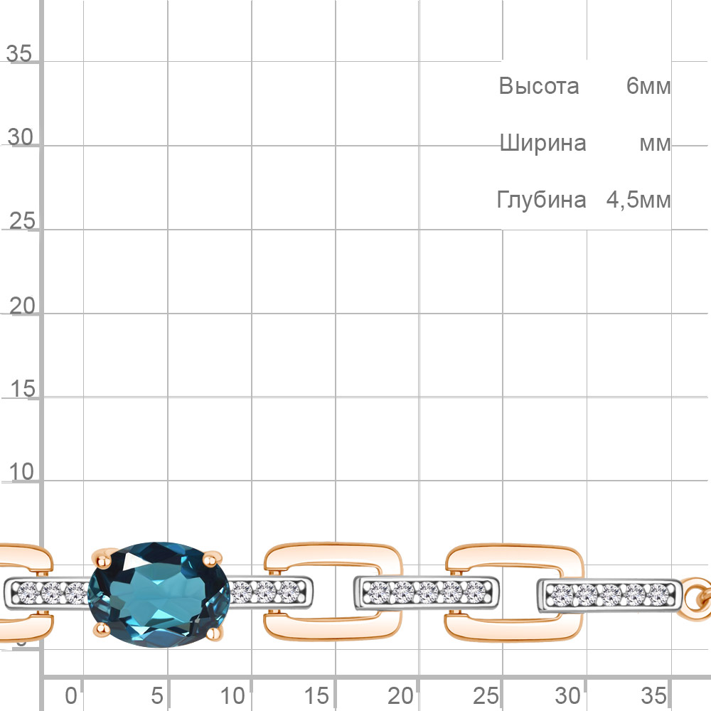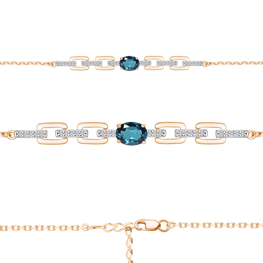 7477708А Браслет из Серебра с топазом лондон блю, фианитами