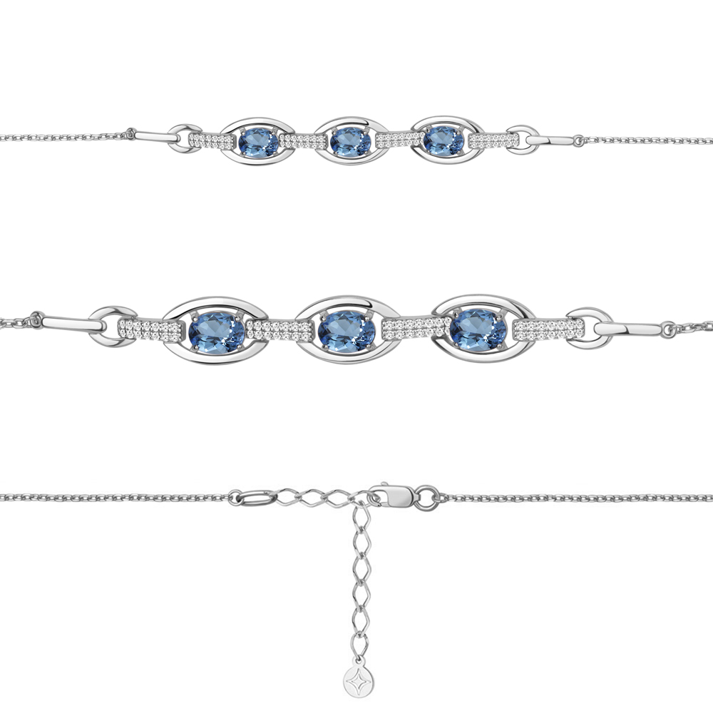 7477805А Браслет из Серебра с топазами свисс блю, фианитами