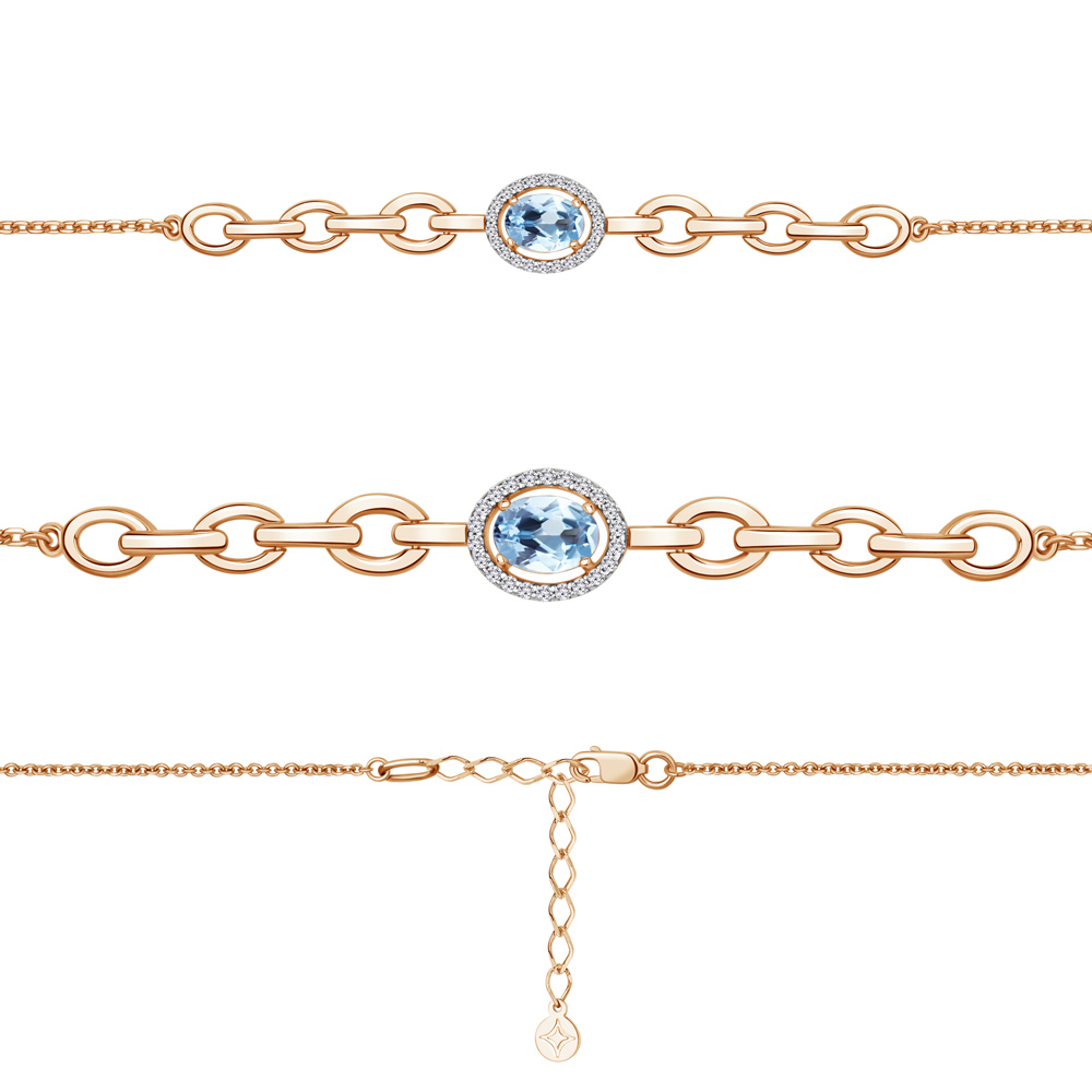 7477905А Браслет из Серебра с топазом свисс блю, фианитами