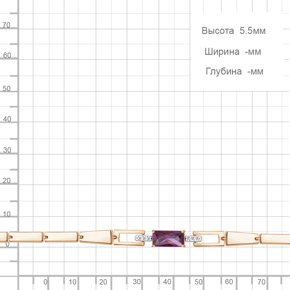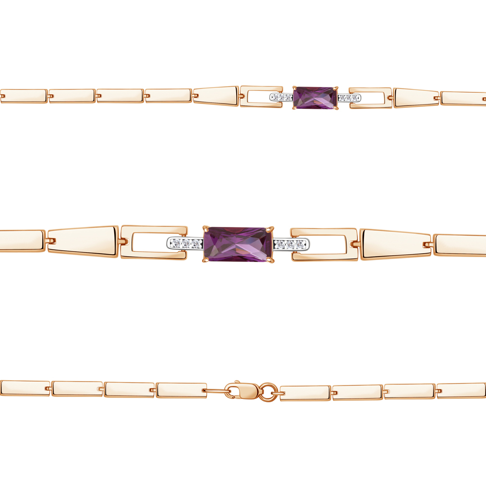 7478084А Браслет из Серебра с наноаметистом иск., фианитами