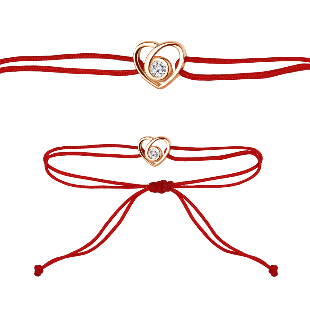 74829АШ Браслет из Серебра с фианитом, шнуром текстильным