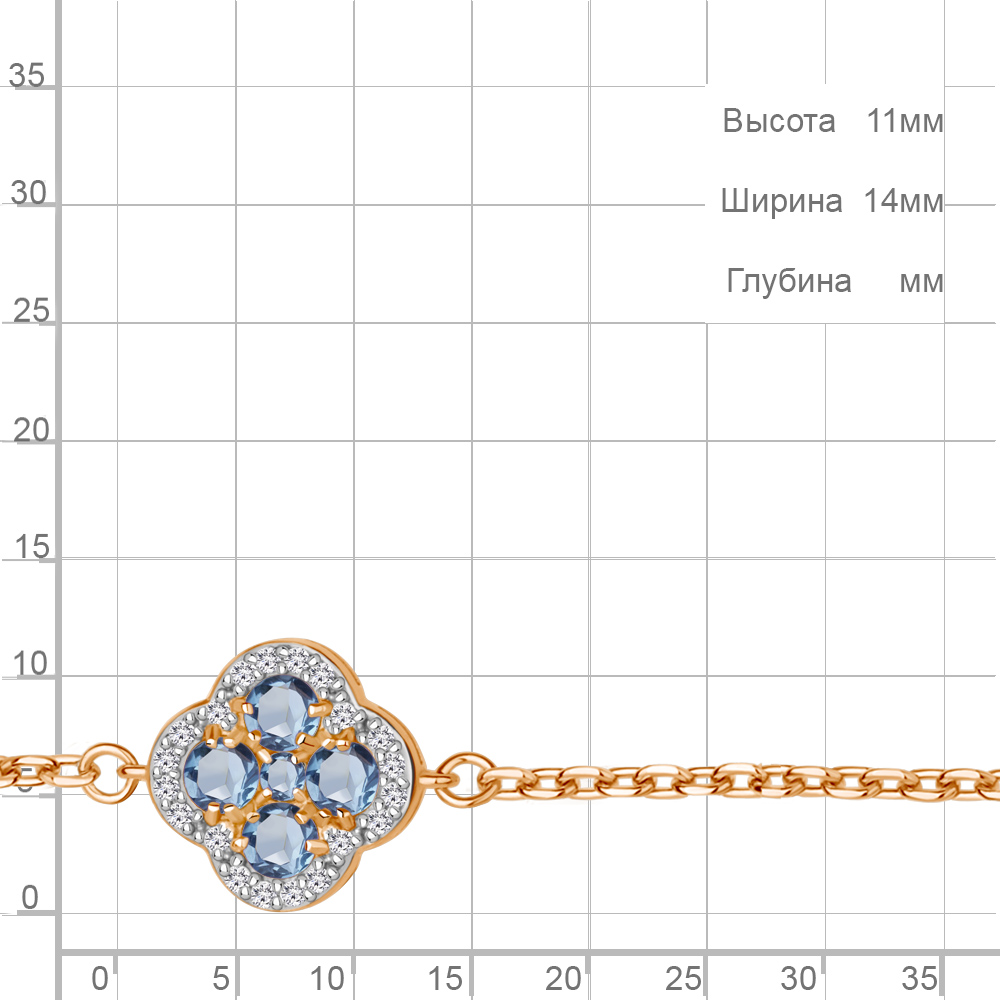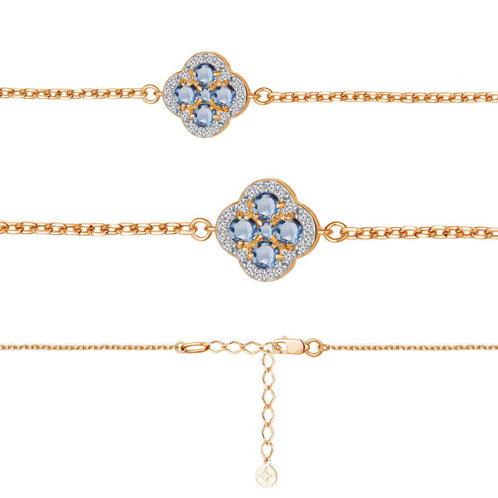 7485205А Браслет из Серебра с топазами свисс блю, фианитами