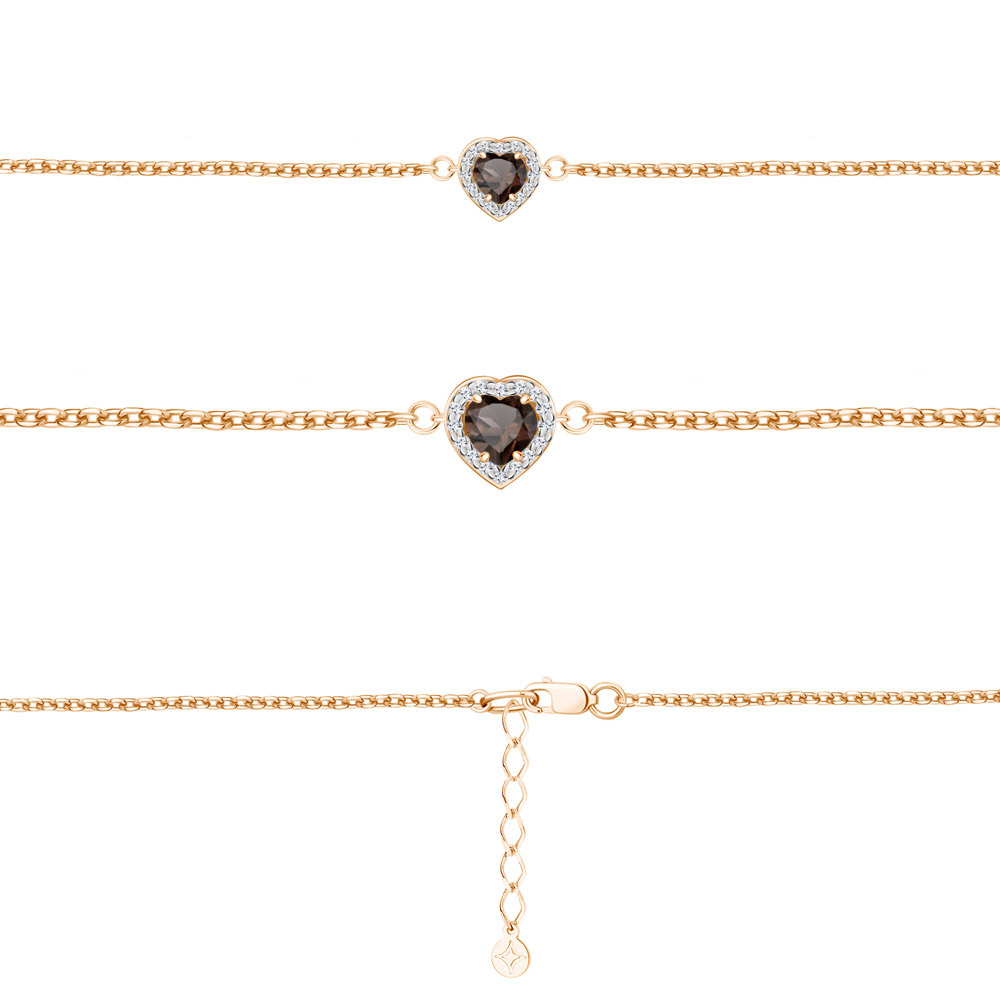 7487001А Браслет из Серебра с кварцем дымчатым, фианитами