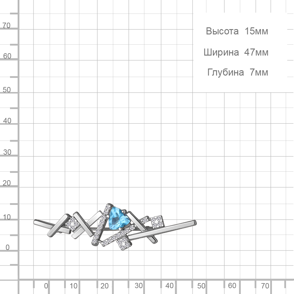 7739305А Брошь из Серебра с топазом свисс блю, фианитами