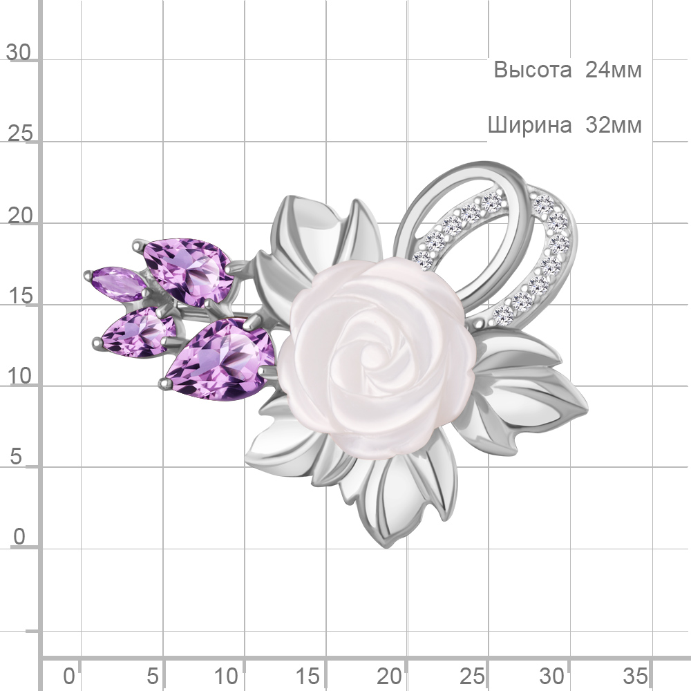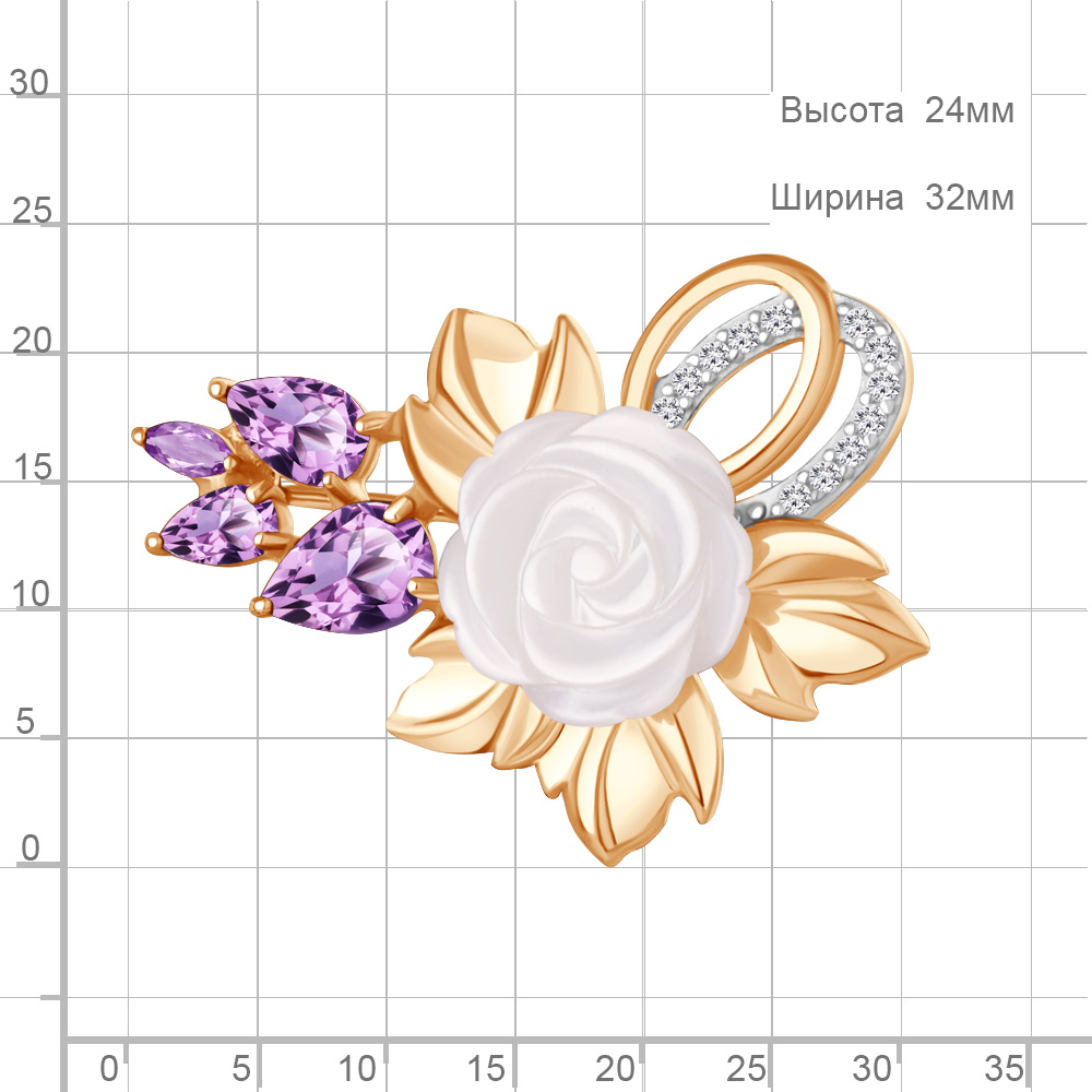 Описание камней 1 Аметист; 1 Аметист; 1 Аметист; 1 Аметист; 1 Перламутр; 12 Фианит