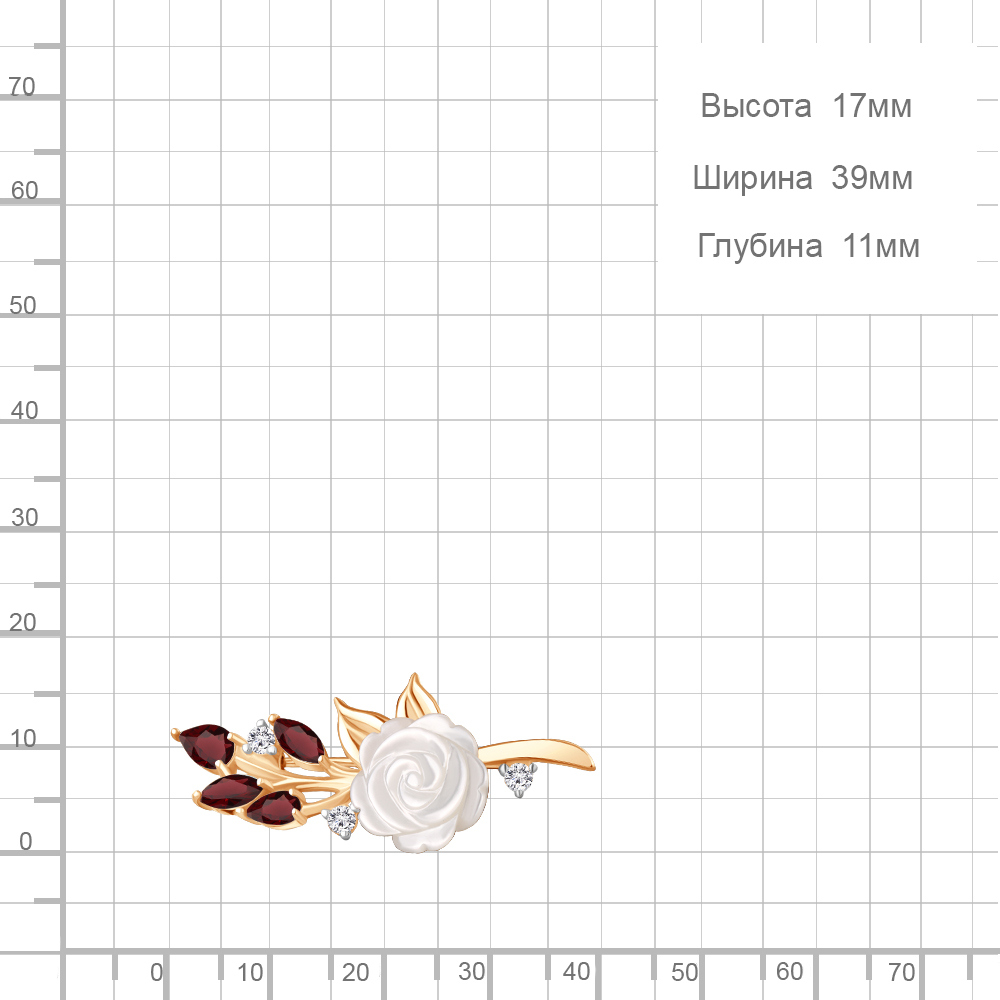 Описание камней 1 Гранат; 1 Гранат; 2 Гранат; 1 Перламутр; 3 Фианит