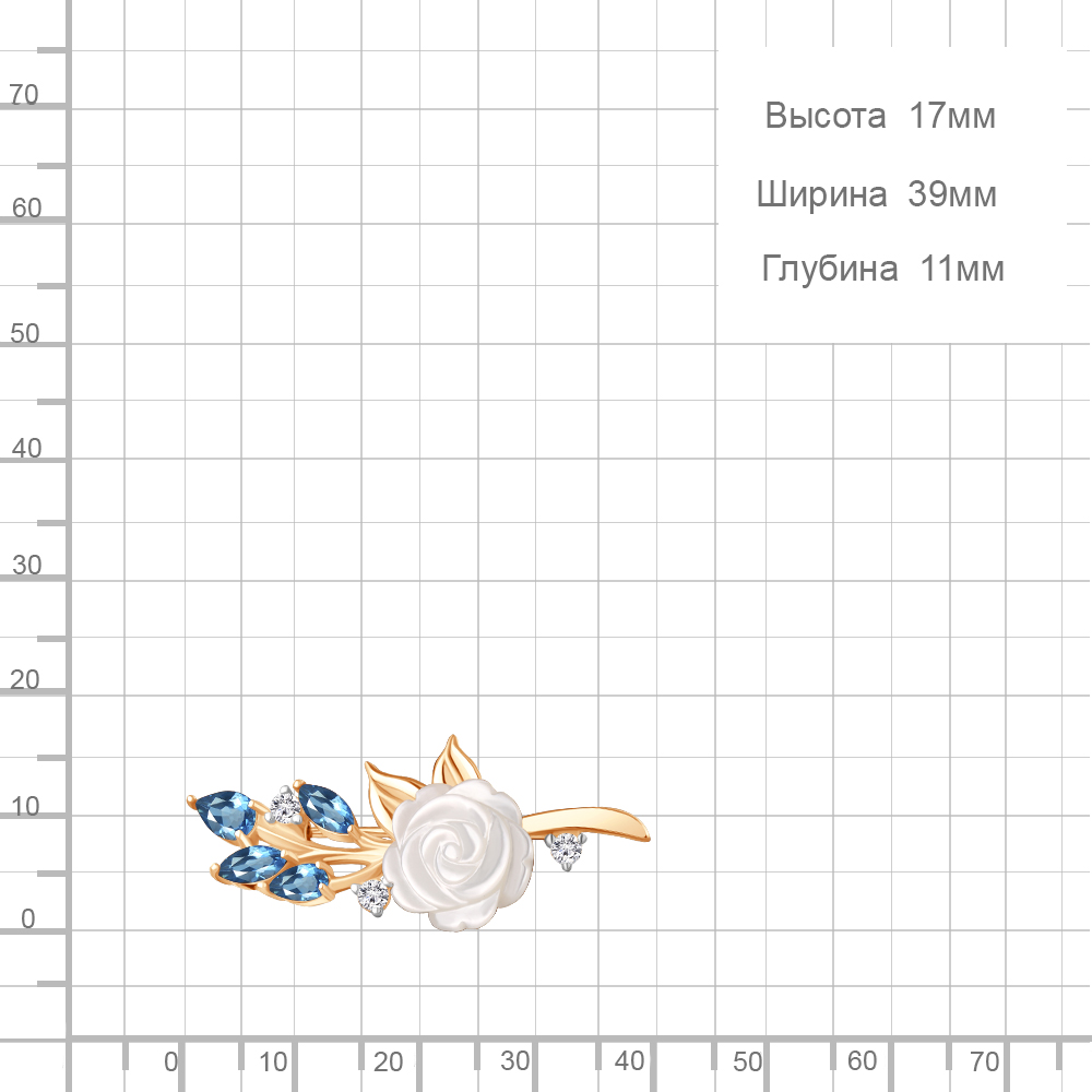 Описание камней 1 Топаз Свисс Блю; 1 Топаз Свисс Блю; 2 Топаз Свисс Блю; 1 Перламутр; 3 Фианит
