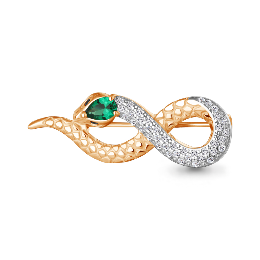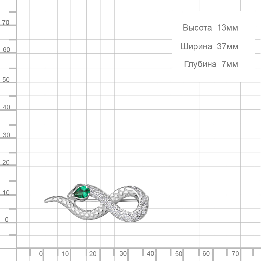 77471АГЧ Брошь из Серебра с наноизумрудом, нанокристаллами, фианитами