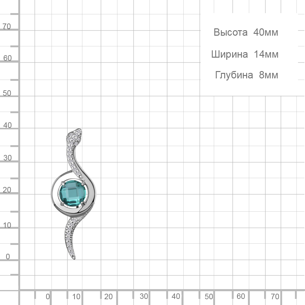 7747288А Брошь из Серебра с нанотурмалином иск., фианитами