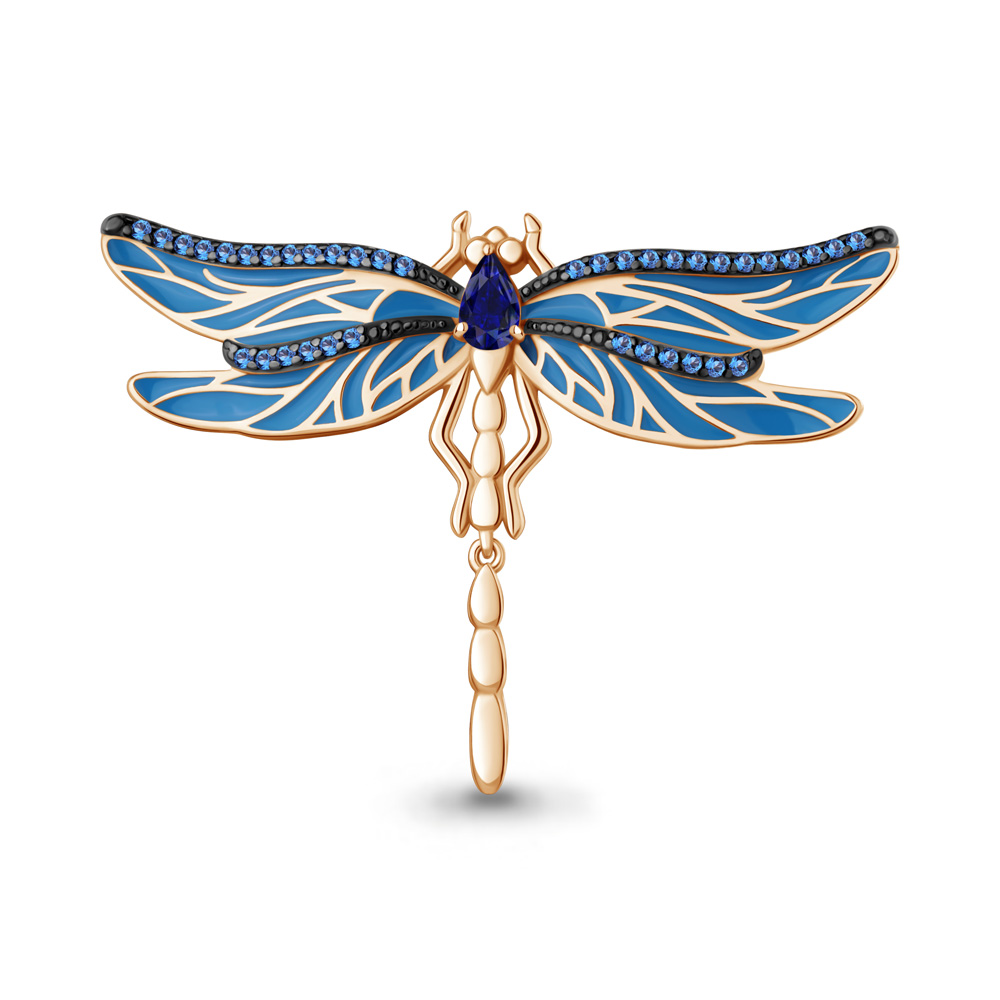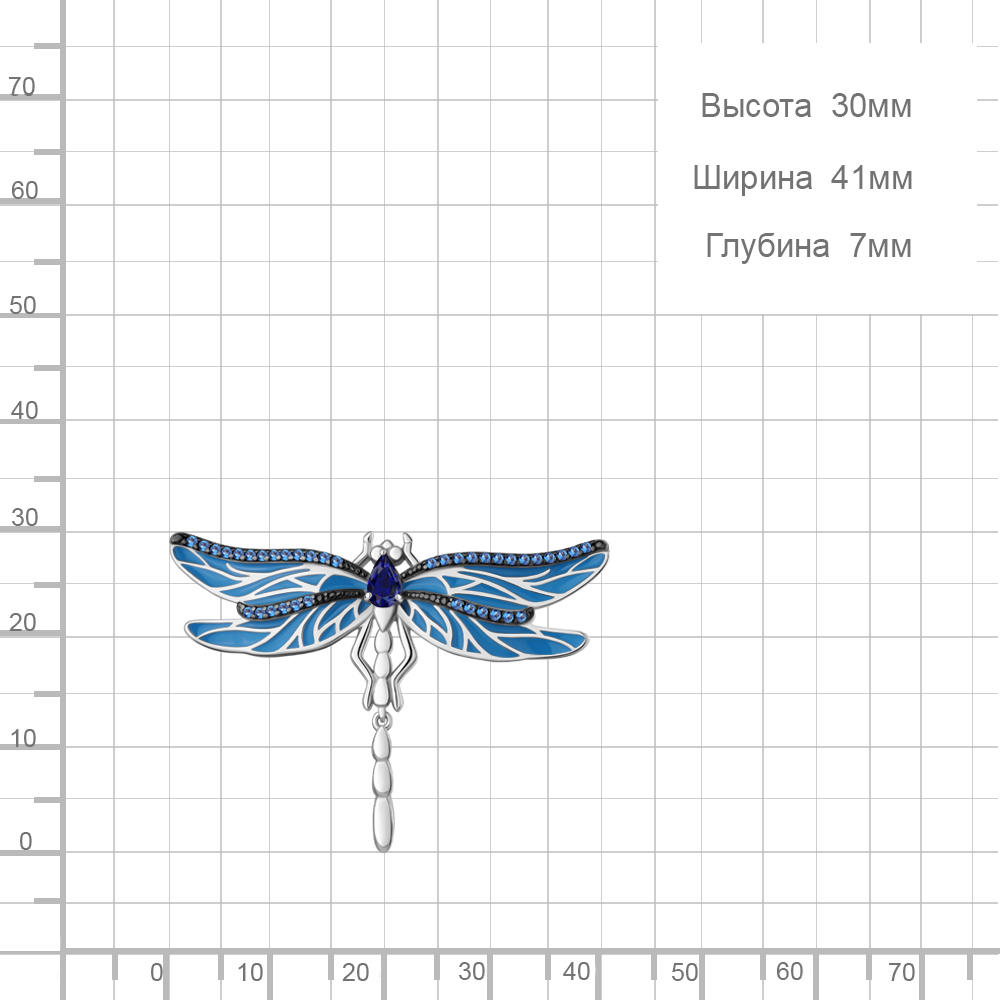 77474Б Брошь из Серебра с наносапфирами, наносапфиром, эмалью