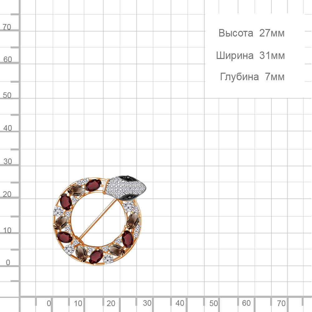 Описание камней 5 Кварц дымчатый; 5 Гранат; 27 Фианит; 2 Нанокристалл; 12 Фианит; 4 Фианит