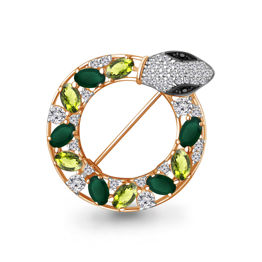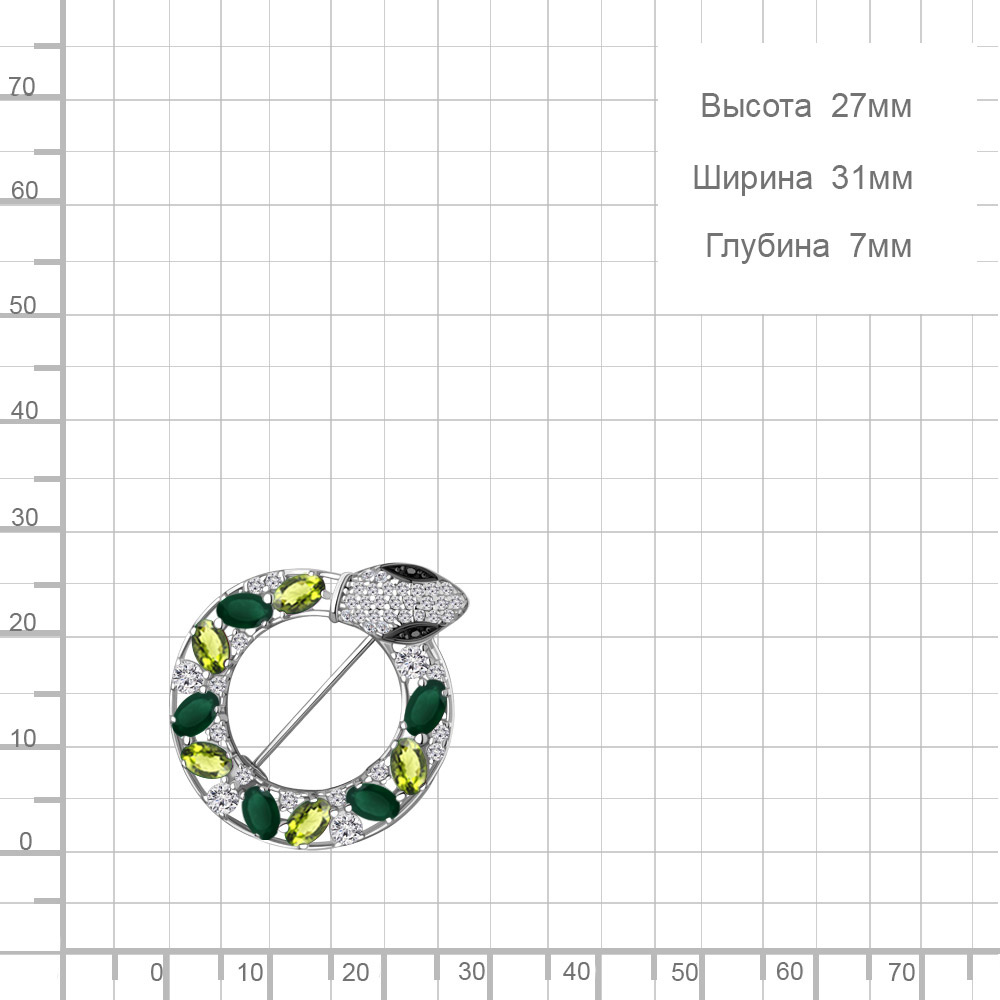 77478515АЧ Брошь из Серебра с агатами, нанокристаллами, фианитами, хризолитами