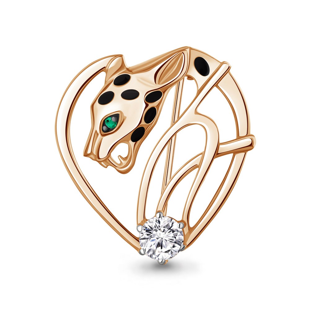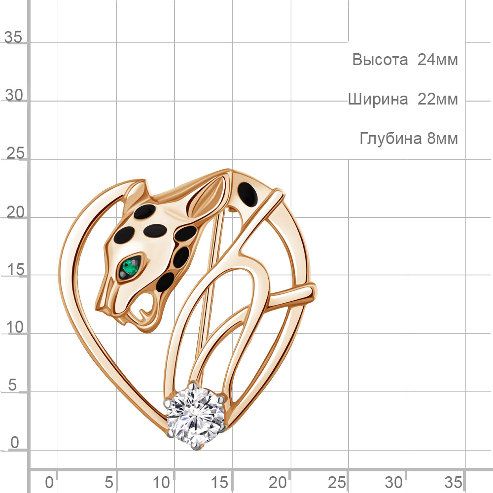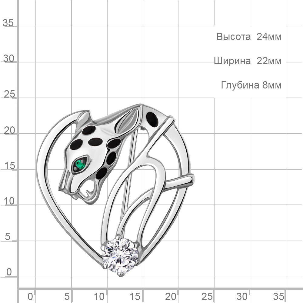 77479АГ Брошь из Серебра с наноизумрудом, фианитом, эмалью