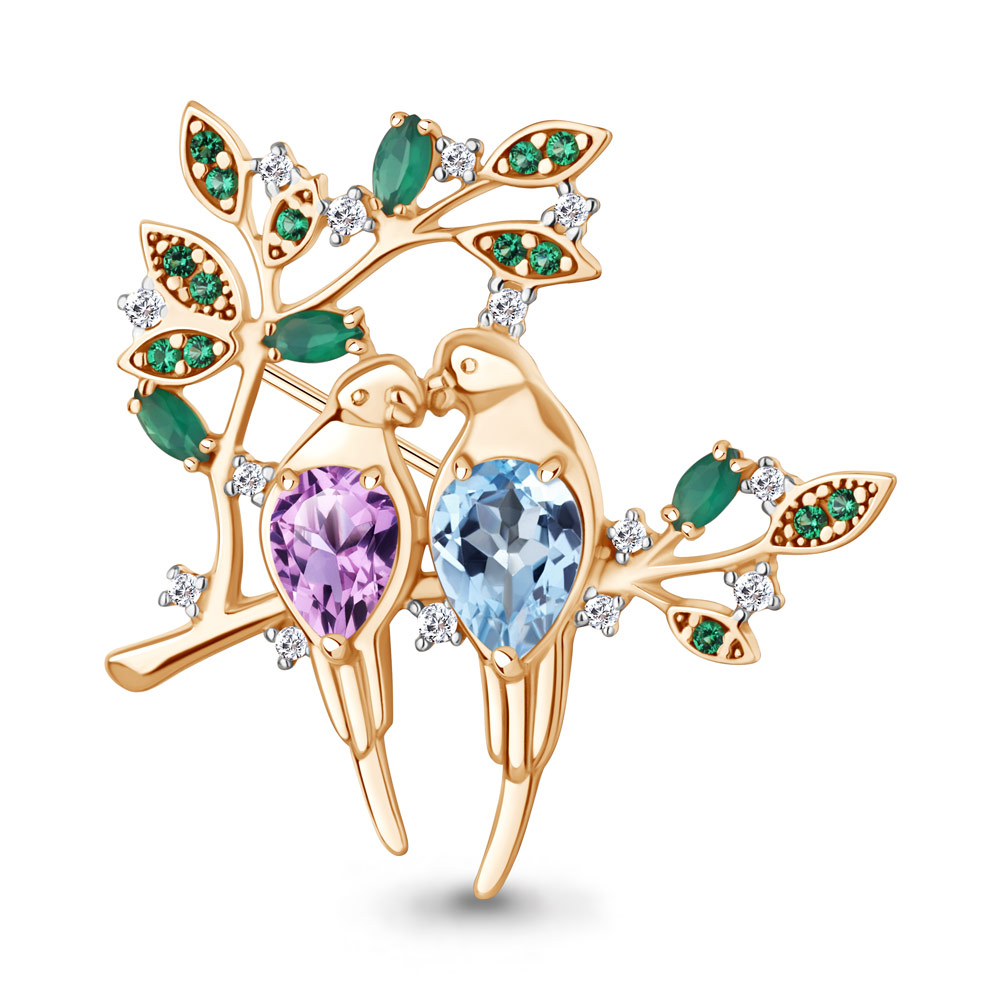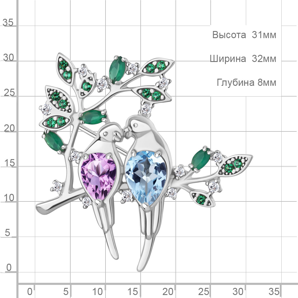 77514539Г Брошь из Серебра с агатами, аметистом, наноизумрудами, топазом свисс блю, фианитами