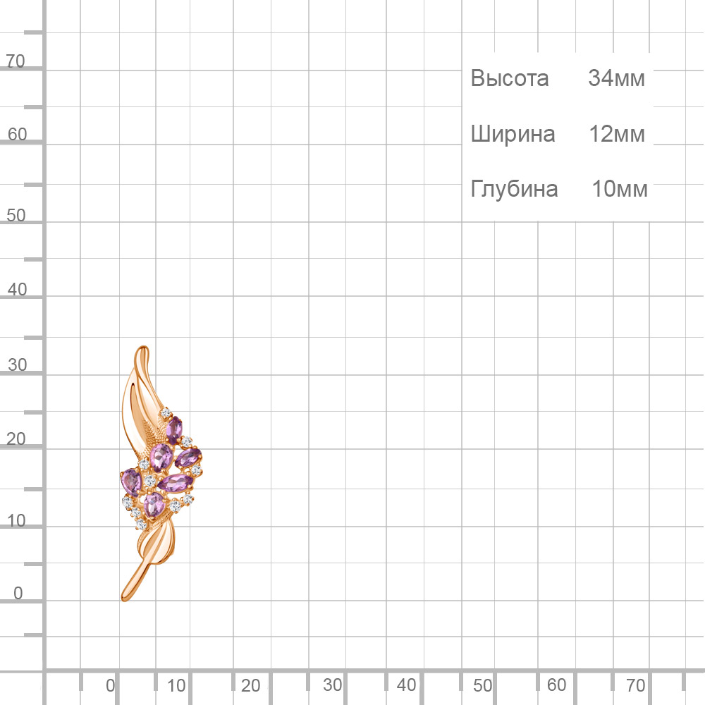 7751504А Брошь из Серебра с аметистами, фианитами