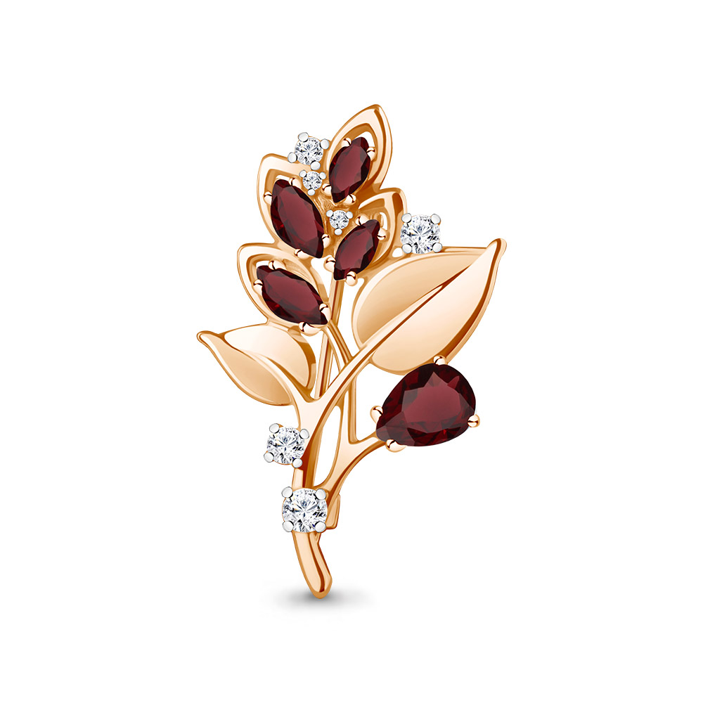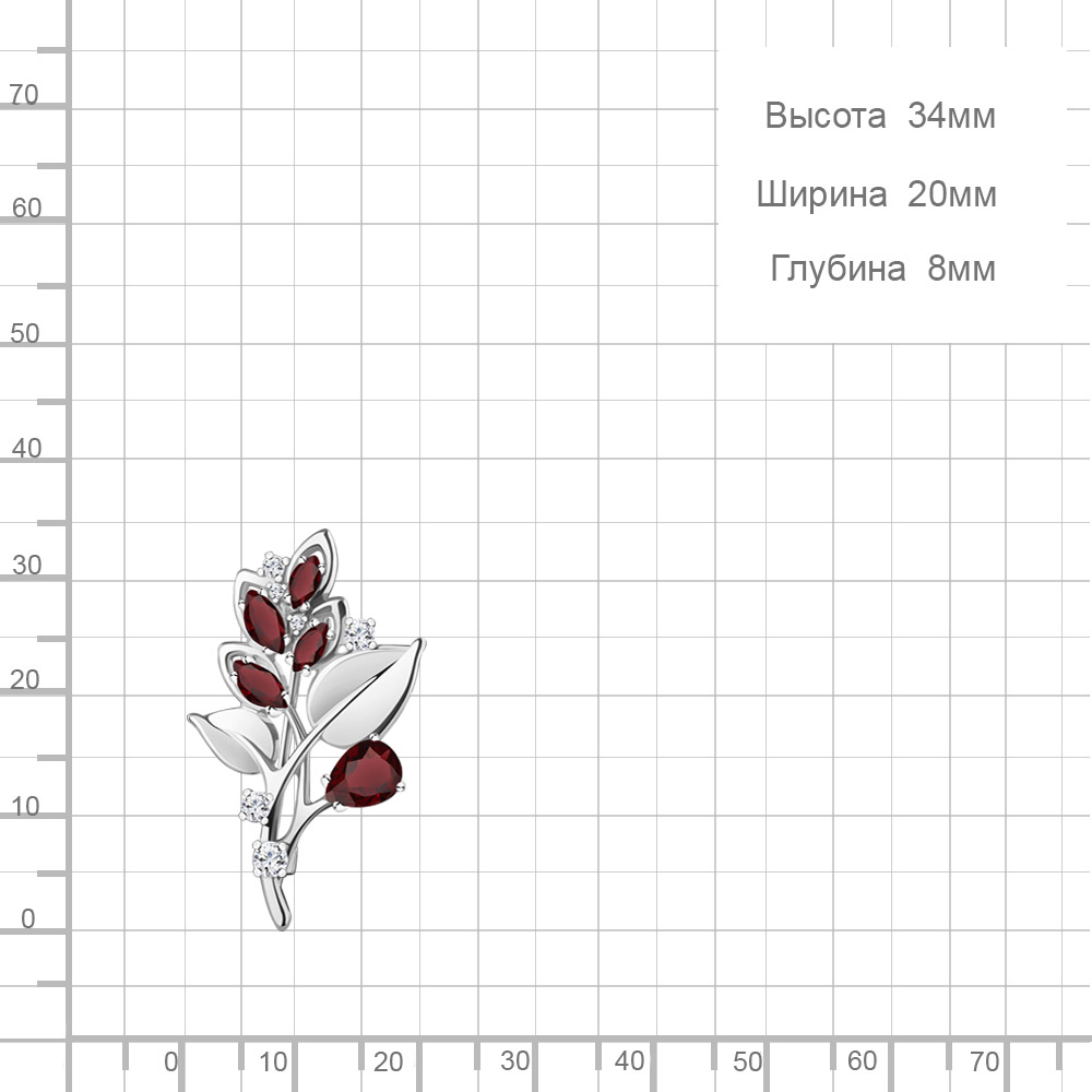 7751603А Брошь из Серебра с гранатами, фианитами