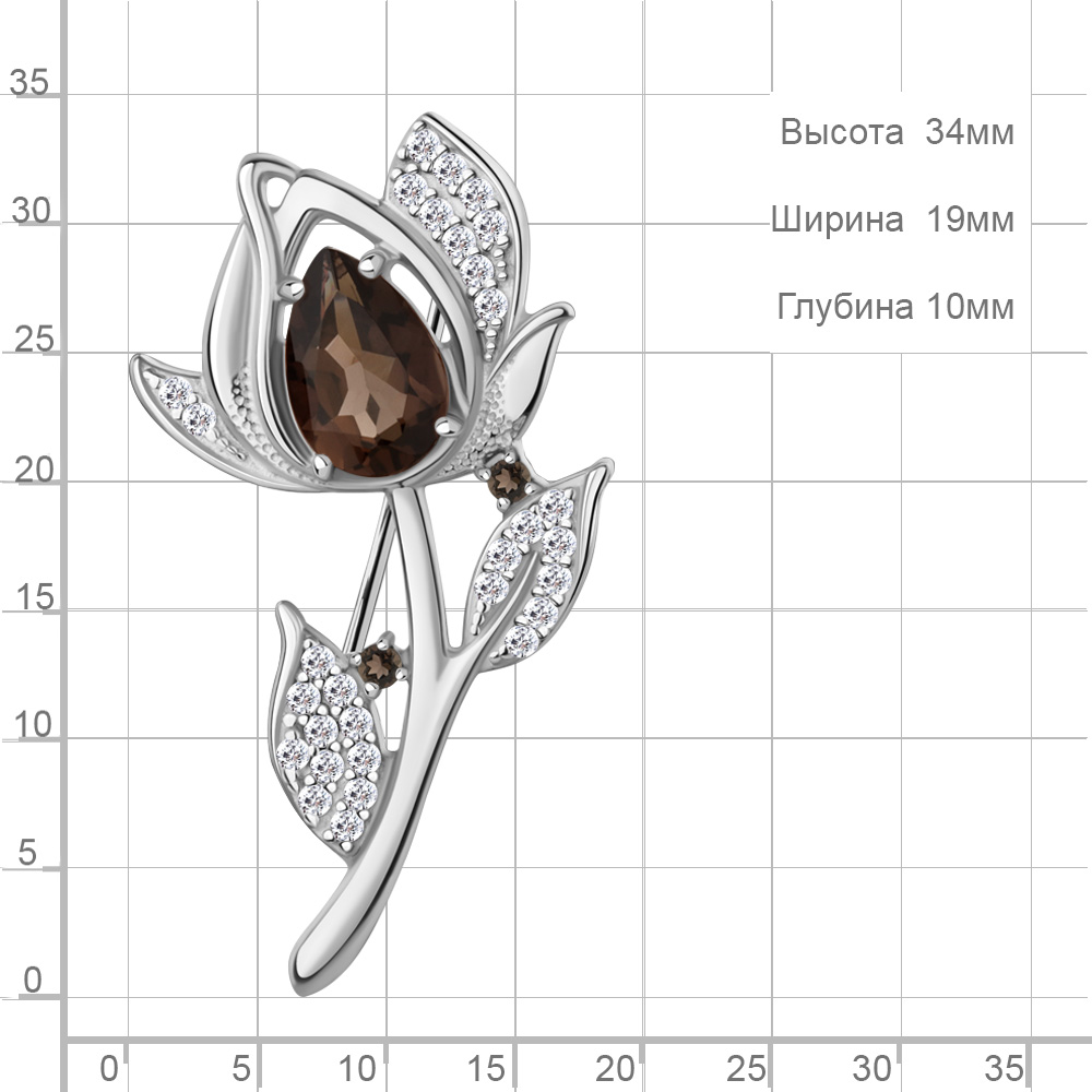 7751801А Брошь из Серебра с кварцами дымчатыми, фианитами