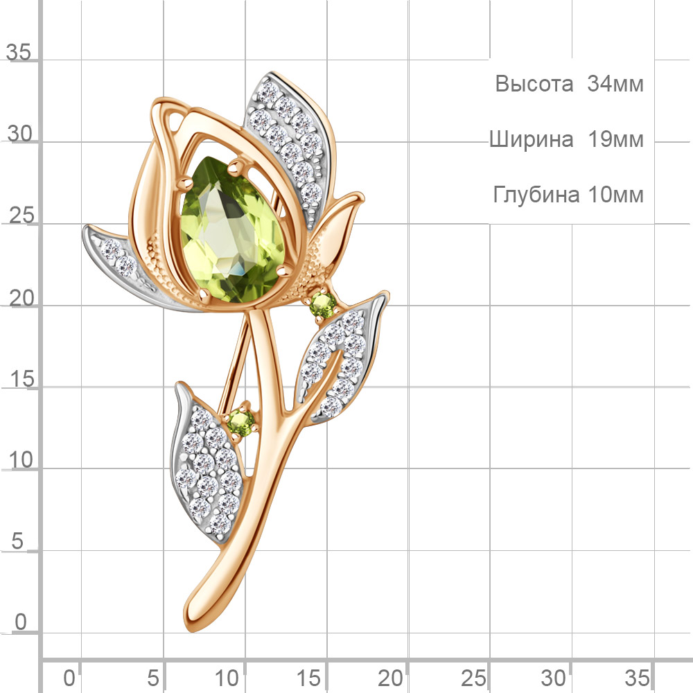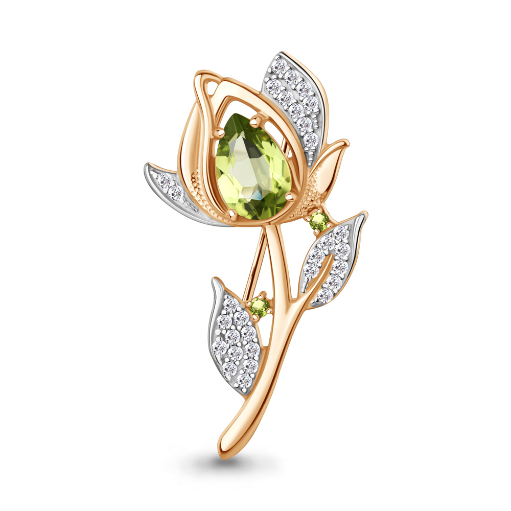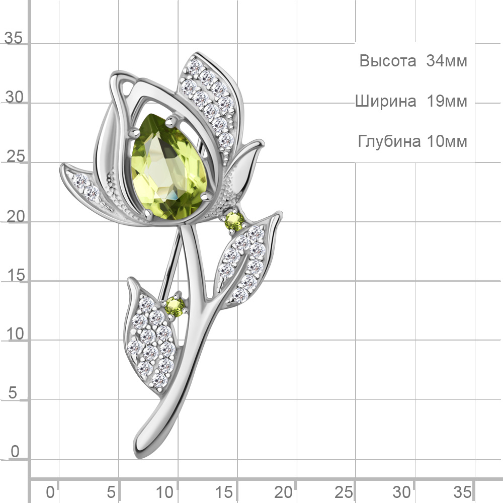 7751807А Брошь из Серебра с фианитами, хризолитами