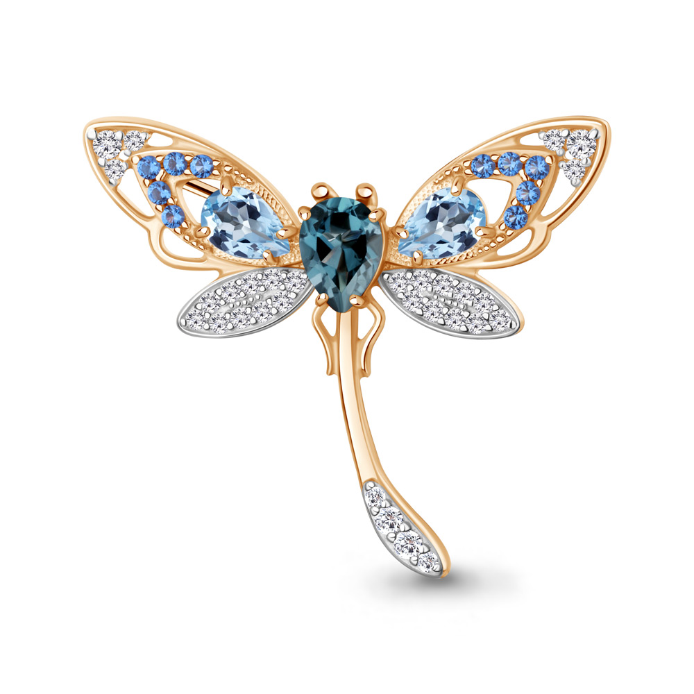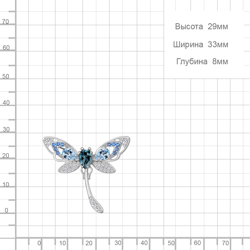 7751962АБ Брошь из Серебра с наносапфирами, топазом лондон блю, топазами свисс блю, фианитами