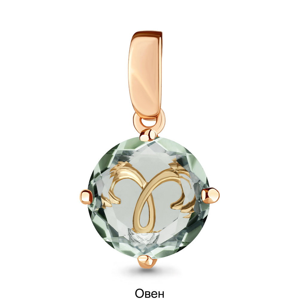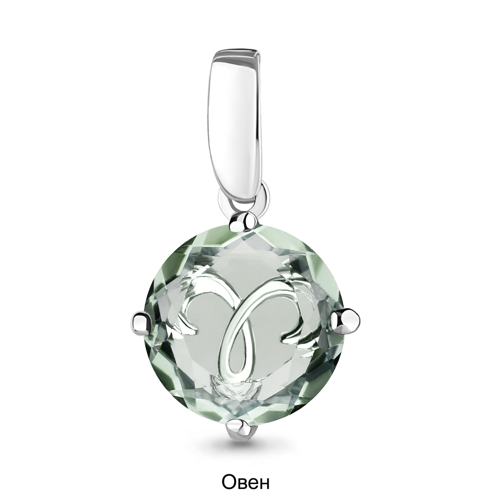 2519015А Подвеска из Серебра с празиолитом (грин аметистом), фианитами из коллекции "Гороскоп"