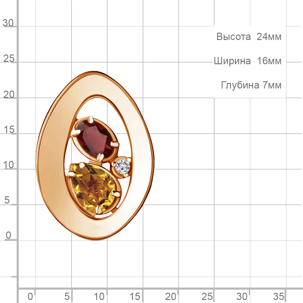 2528137А Подвеска из Серебра с гранатом, фианитом, цитрином