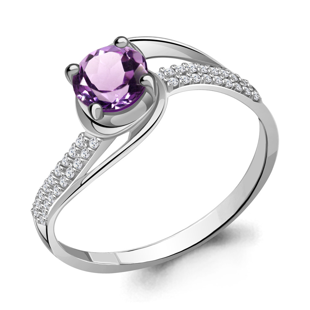 6399604А Кольцо из Серебра с аметистом, фианитами