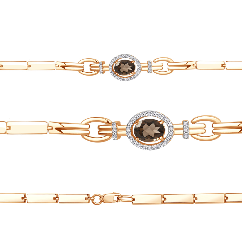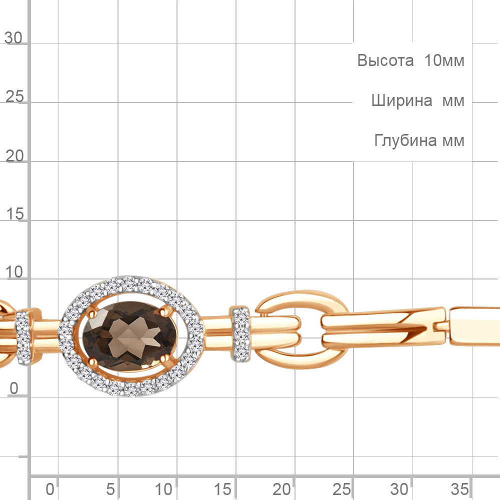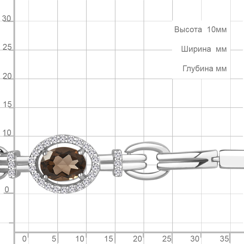 7478201А Браслет из Серебра с кварцем дымчатым, фианитами