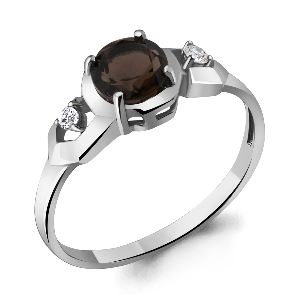 6448801 Кольцо из Серебра с кварцем дымчатым, фианитами