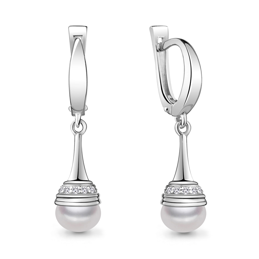 42246А Серьги из Золота с культ. жемчугом аа, фианитами