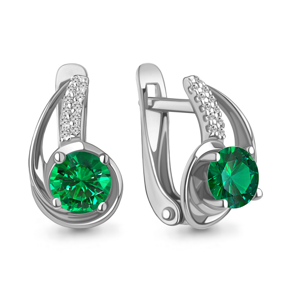 42985Г Серьги из Золота с наноизумрудами, фианитами