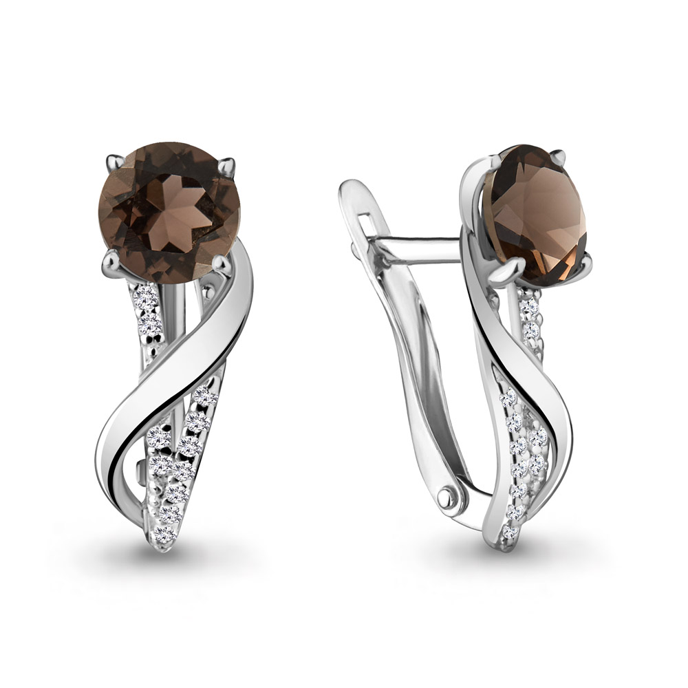 4405401А Серьги из Золота с кварцами дымчатыми, фианитами