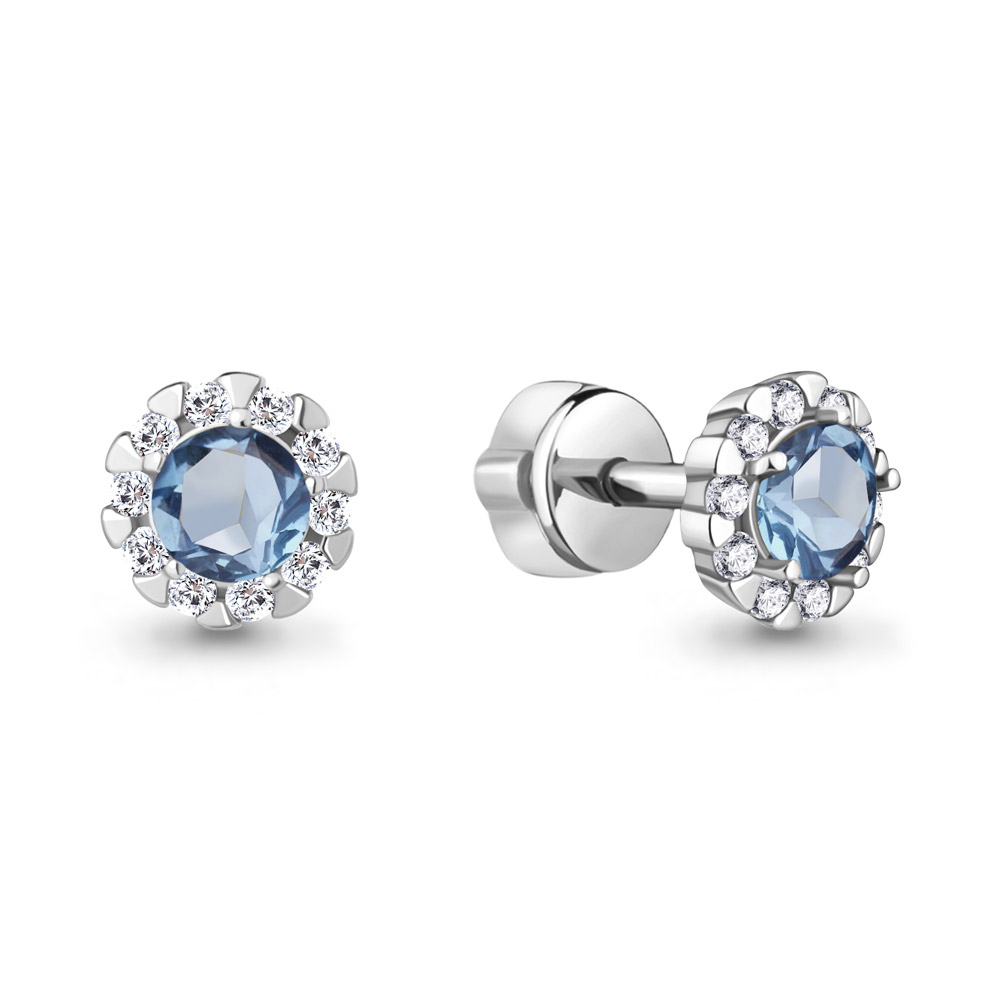 4408505А Серьги из Золота с топазами свисс блю, фианитами