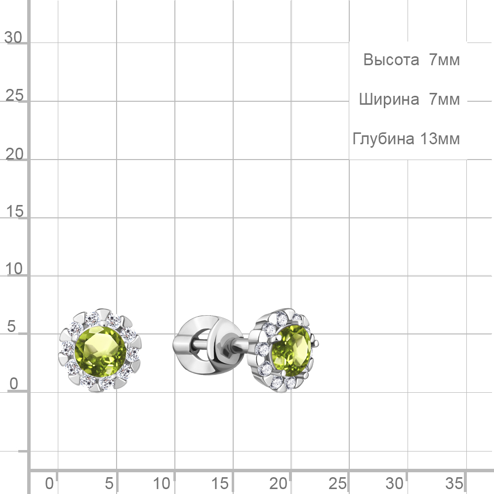 4408507А Серьги из Золота с фианитами, хризолитами