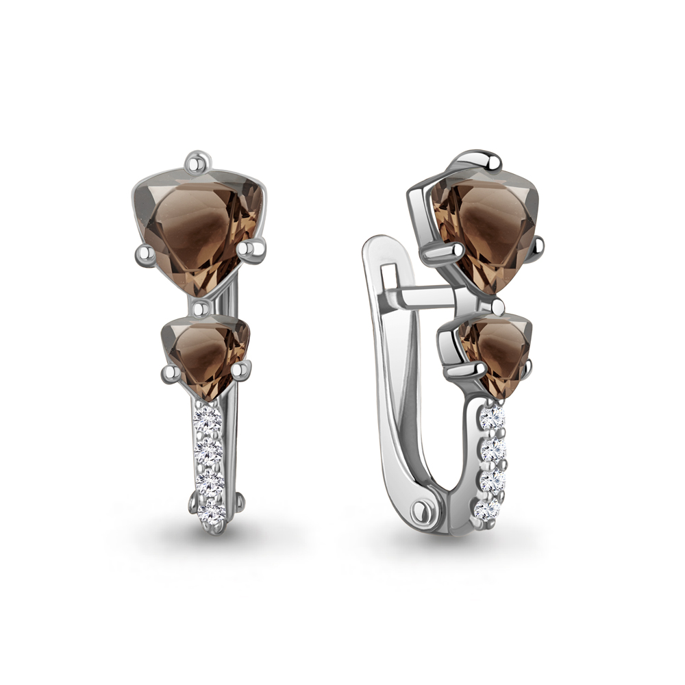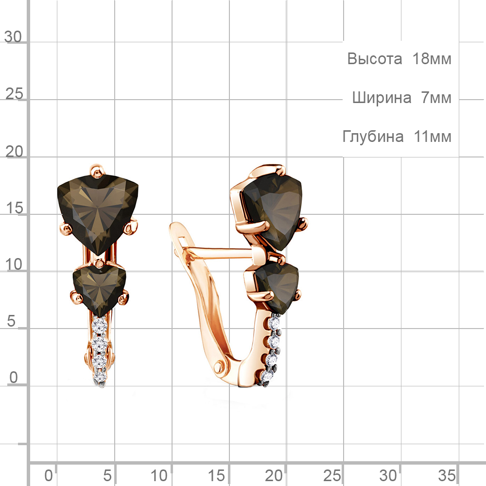 4413301А Серьги из Золота с кварцами дымчатыми, фианитами