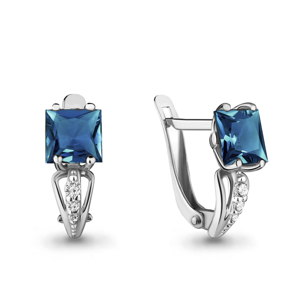 4414508А Серьги из Золота с топазами лондон блю, фианитами