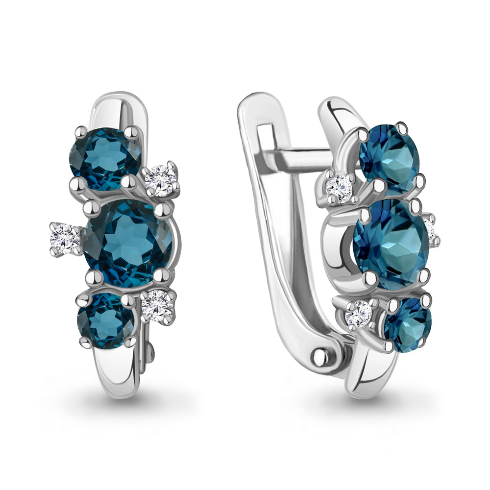 4429708 Серьги из Золота с топазами лондон блю, фианитами