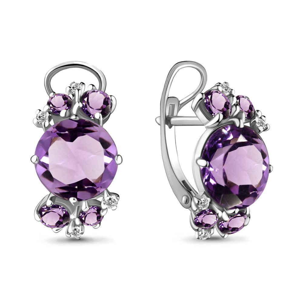 4440704А Серьги из Золота с аметистами, фианитами из коллекции "Фруктовый лёд"