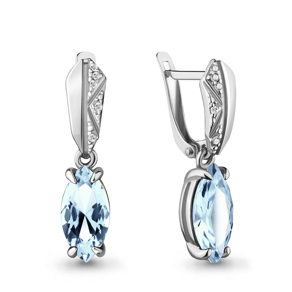 4475702А Серьги из Золота с топазами скай блю, фианитами