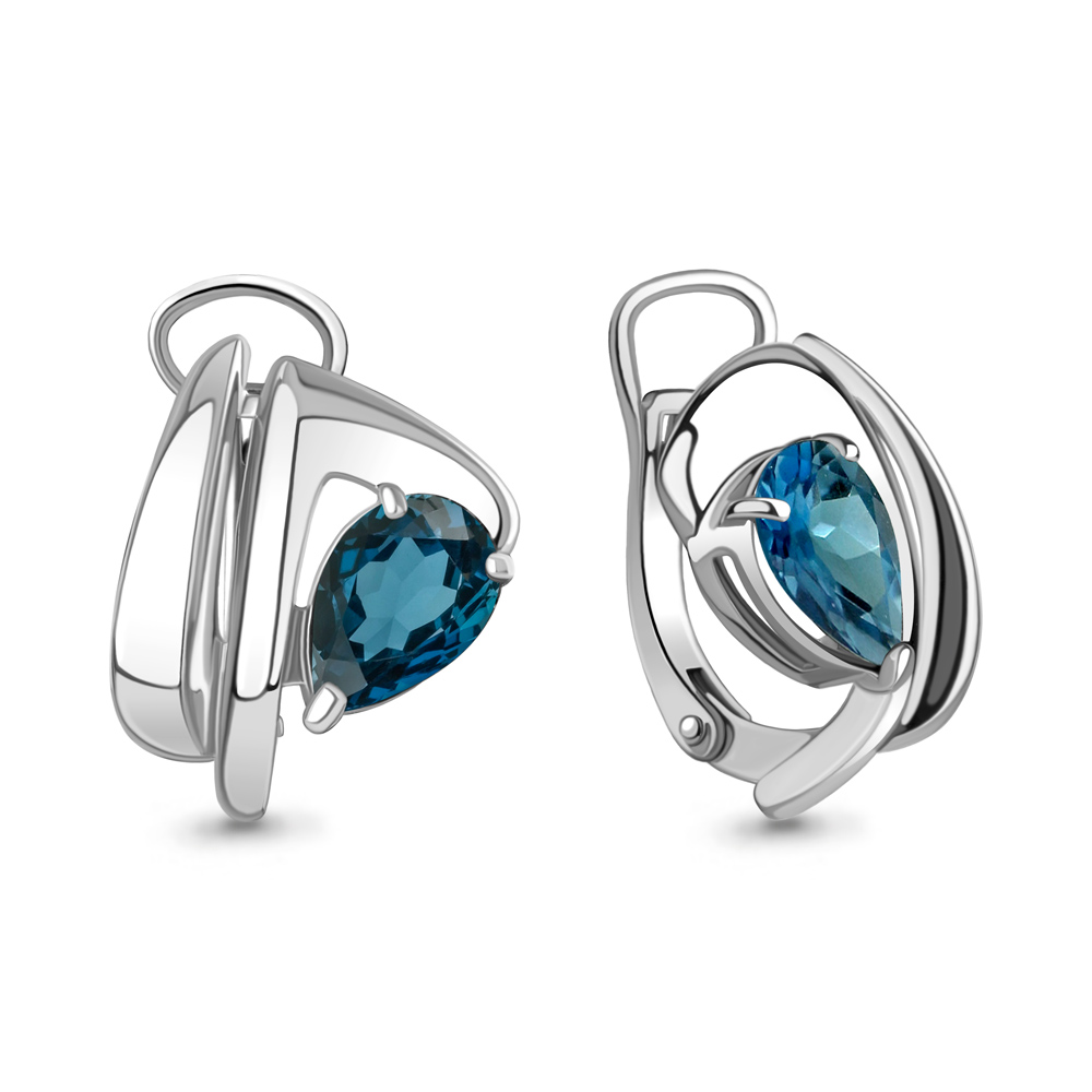 4489808 Серьги из Золота с топазами лондон блю из коллекции "Лагуна"