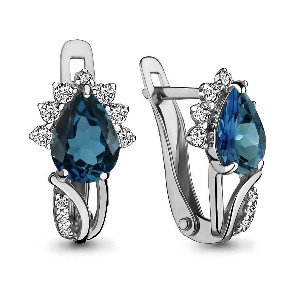 4496808А Серьги из Золота с топазами лондон блю, фианитами из коллекции "Belle"