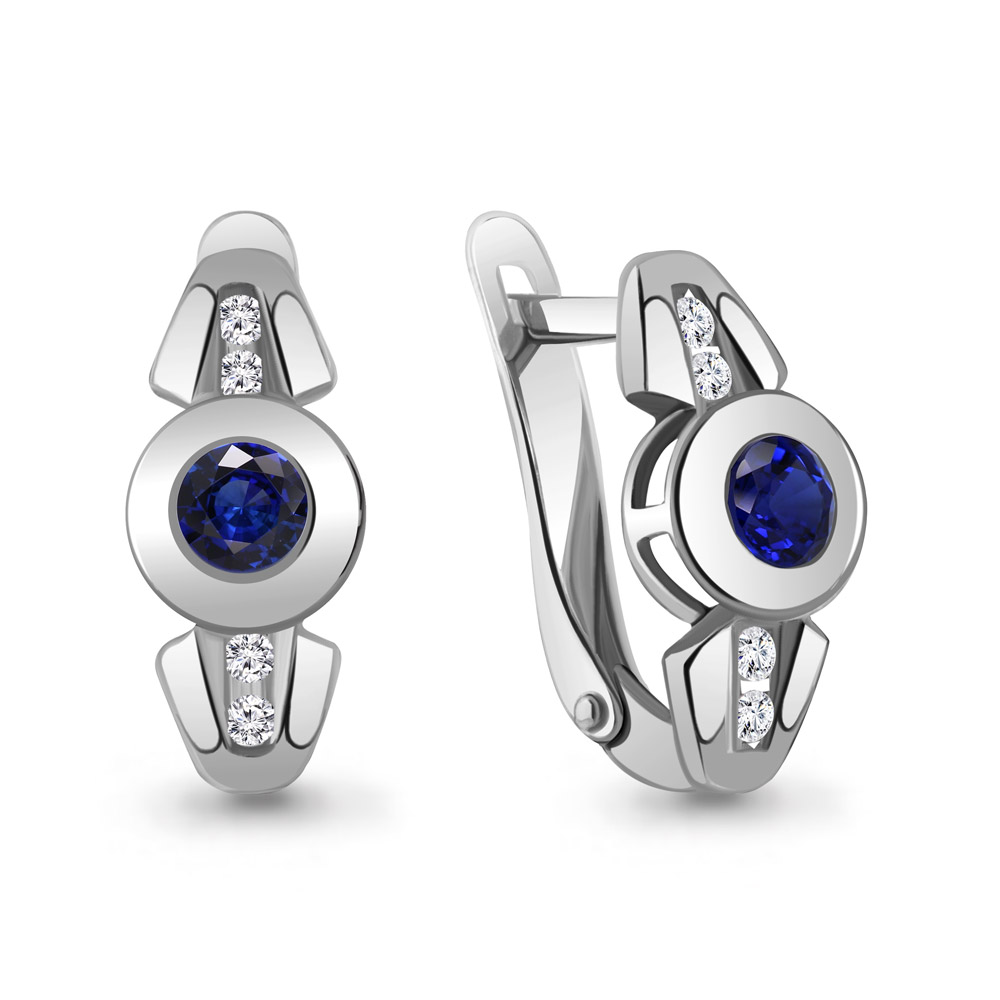 46110Н Серьги из Золота с наносапфирами, фианитами