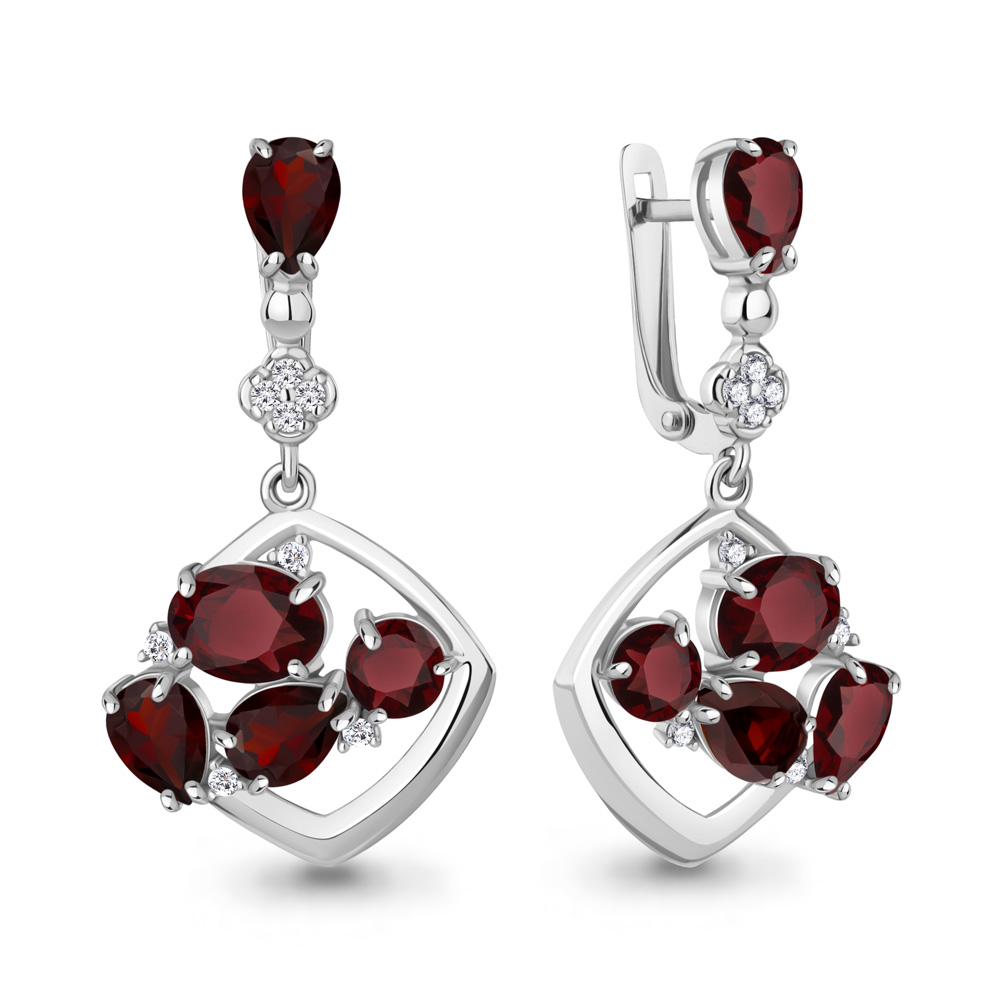 4706903А Серьги из Золота с гранатами, фианитами из коллекции "Chicago"