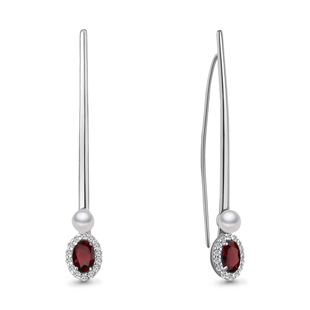 4772403А Серьги из Золота с гранатами, культ. жемчугом ааа, фианитами
