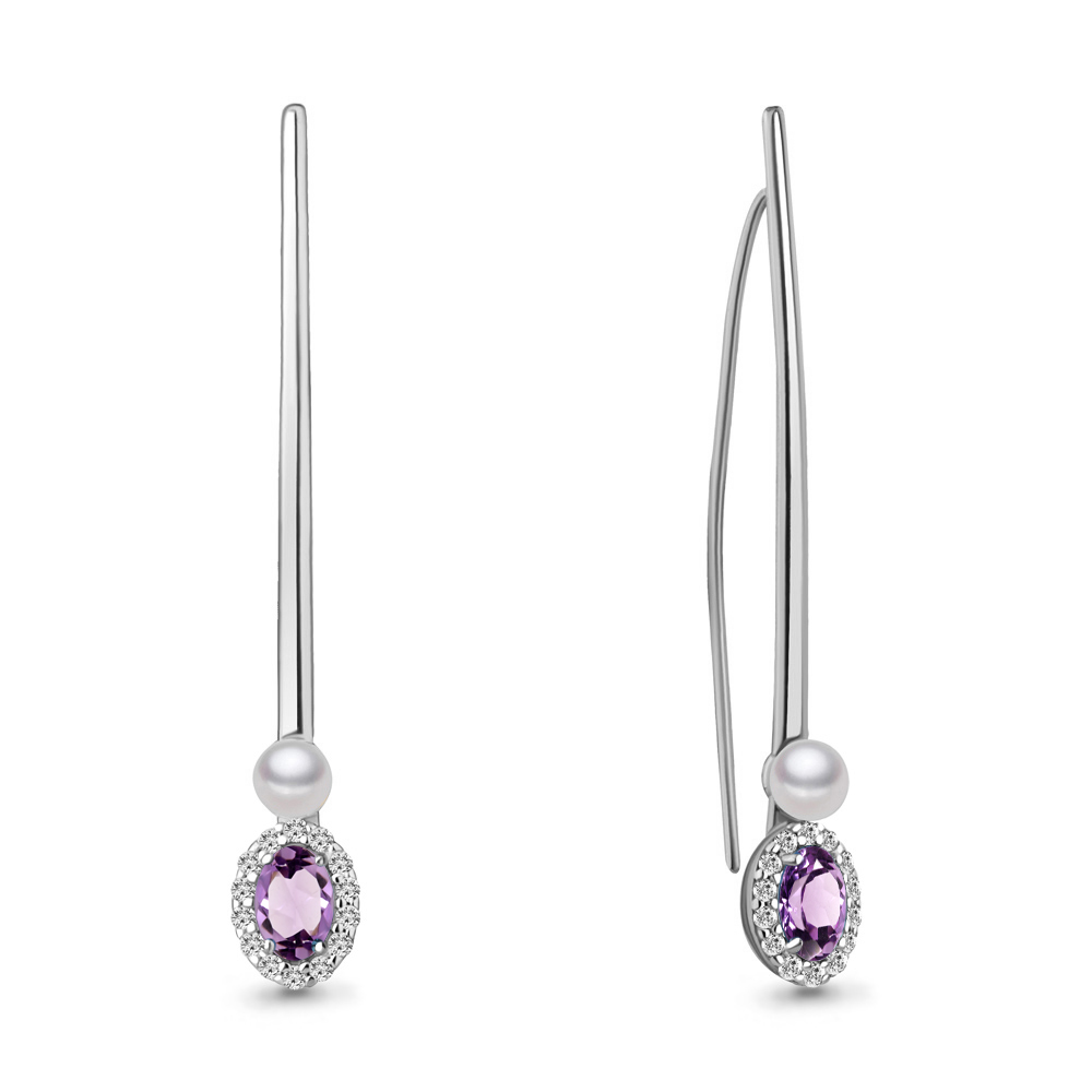 4772404А Серьги из Золота с аметистами, культ. жемчугом ааа, фианитами