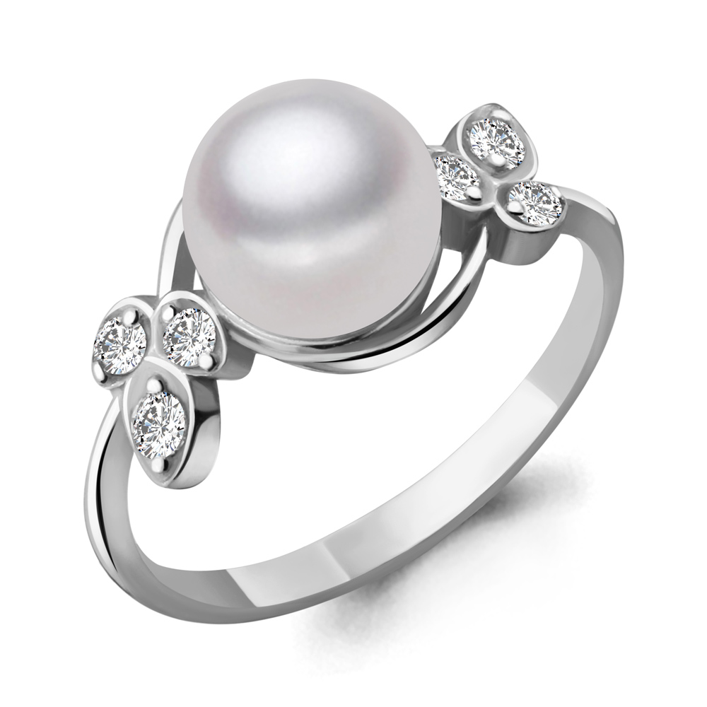61774А Кольцо из Золота с культ. жемчугом аа, фианитами