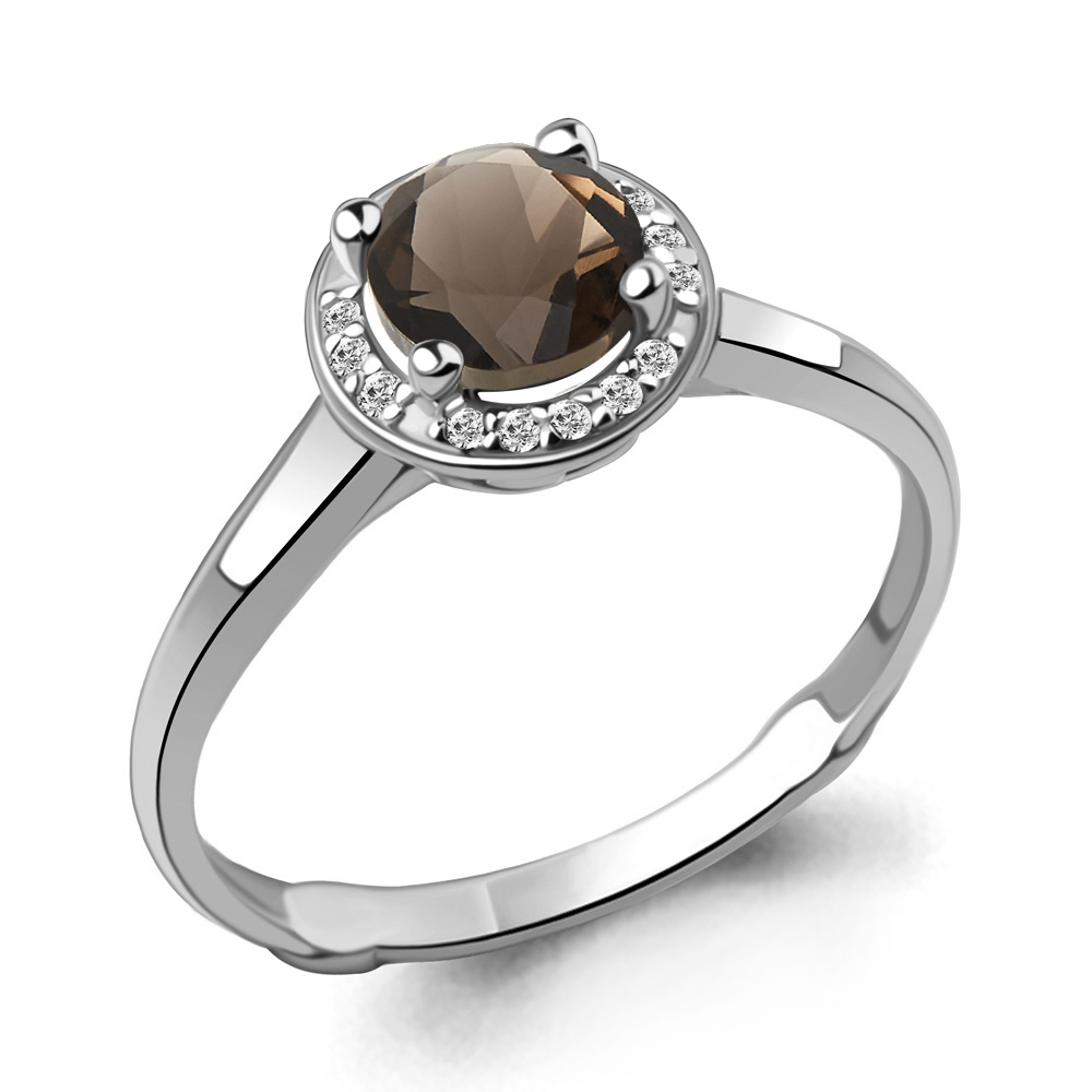 6399101А Кольцо из Золота с кварцем дымчатым, фианитами