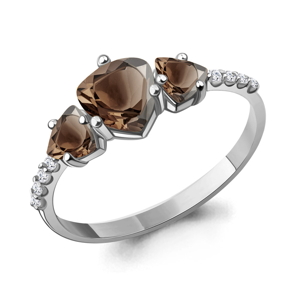 6519701А Кольцо из Золота с кварцами дымчатыми, фианитами