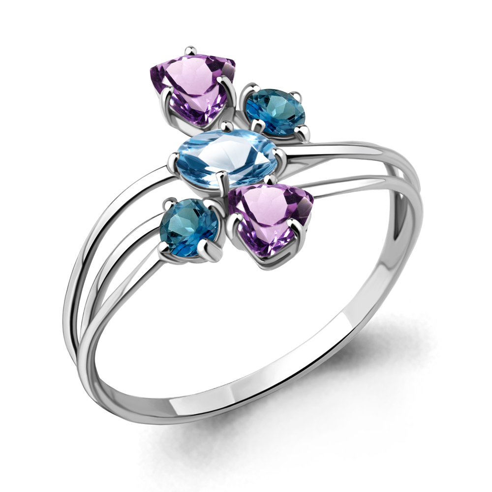 6562742 Кольцо из Золота с аметистами, топазами лондон блю, топазом свисс блю из коллекции "Алиса"