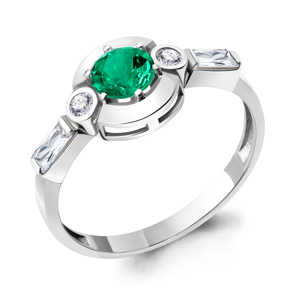 67290АГ Кольцо из Золота с наноизумрудом, фианитами из коллекции "Клеопатра"